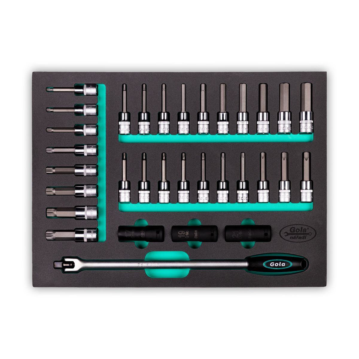 Profesionální sada prodloužených hlavic GOLA 1/2" nabízí široký výběr TORX, IMBUS a XZN zástrčných hlavic v prodlouženém provedení. Díky kloubovému vratidlu a kombinaci rozměrů pokrývá všechny běžné i speciální aplikace v dílně a servisu.